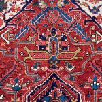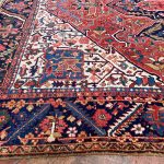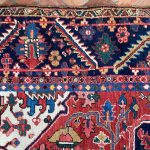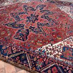 Heriz carpets have always been regarded as beautiful, tough objects of decoration, made in the north-west of Persia these handwoven works of art always have variations from one piece to another. Some draw influences from further north into the Caucasus and vivid colours like this particular carpet.  A decorative yet practical carpet which has been used for over 100 years and has already stood the test of time.