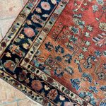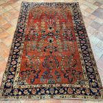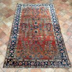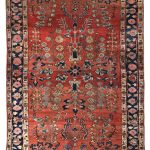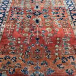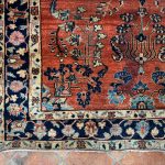 Sarouk rugs have been produced for much of the 20th century. The early successes of the Sarouk rug are largely owed to the American market. From the 1910s to 1950s, the “American Sarouk”, also known as the “painted Sarouk”, was produced.  American customers had an affinity for the Sarouk’s curvilinear and floral designs. What they did not appreciate, however, was the colour, so for much of the 1920s, 1930s and 1940s, rugs exported from Persia were dyed to a desirable, deep, raspberry-red colour, once they arrive in the USA.