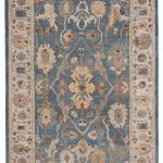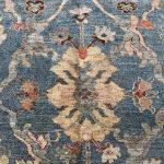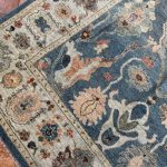 This contemporary Sultanabad carpet is actually one of a pair! View ref.11627 to see the pair to it, almost the same size and very similar colours too.  Both use a stunning variety of indigo blues, soft gold tones, grey tones, and orange and red dyes.  Soft pinks too, along with sage greens, a great palette of natural dyes, all hand-woven with excellent soft wool.