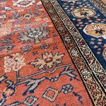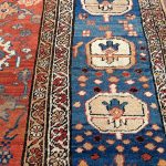 The weavers in Bakshaish, from Northern Persia used the influences of tribal weavers from the Caucasian villages in their designs.  These rustic carpets are often a very similar in colour to that of neighbouring Heriz and Serapi carpets and rugs.  The early pieces such as this will always have more muted dyes purely down to their age, the natural yellows and variety of rust reds are only seen in carpets of this vintage.