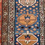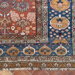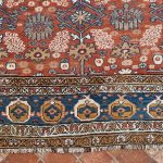 This Bakshaish however, has a wonderful all over design, using smaller abstract palmette designs in ivory and brown shades, using vines in varying shades of blue and brown tones too.  The main border is a wonderful blue, with unusual geometric motifs and scattered smaller flowers, we can see some fantastic dye change too, using lighter shades of pale blue.