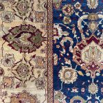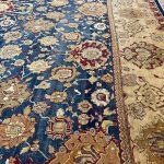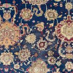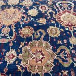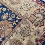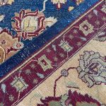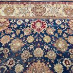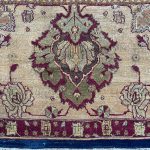 The Indian city of Agra in the late 19th century was an area where carpet weaving began to excel, as carpets and rugs were comissioned for the western market. Persian designs were used, but like Ziegler carpets the designs were generally enlarged to show beautiful palmettes and vines with mainly reds, purples, greens and ivory as the predominant colours.