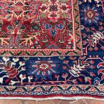 Ziegler-Mahal’s are called as such, because the Ziegler workshop produced carpets from their own looms with their own designs. Using traditional Persian patterns consisting of small palmettes, floral rosettes and leaves, these were soon commissioned in grand sizes for the Western market and the designs, in particular the palmettes, were blown up to large proportions. Often these Ziegler-Mahal’s can be considered earlier productions from the workshop, before designs were scaled up and large 5 x 4 metre examples were produced.