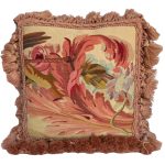 A beautiful Antique Aubusson cushion which has been handmade with a silk backing. This cushion is feather filled and very soft to handle. The Aubusson face of this cushion is from an original French tapestry from the mid 19th century in the period of Napoleon III, which has been conserved where necessary and then made into this elegant decorative cushion. This cushion is one of a pair made from the same tapestry – view ref. 10699, plus additional images attached of them sitting together.