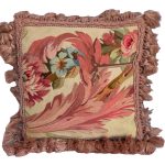 A beautiful Antique Aubusson cushion which has been handmade with a silk backing. This cushion is feather filled and very soft to handle. The Aubusson face of this cushion is from an original French tapestry from the mid 19th century in the period of Napoleon III, which has been conserved where necessary and then made into this elegant decorative cushion. This cushion is one of a pair made from the same tapestry – view ref. 10698, plus additional images attached of them sitting together.