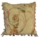 A beautiful Antique Aubusson cushion which has been handmade with a silk backing and wool details.  This cushion is feather filled and very soft to handle.  The Aubusson face of this cushion is from an original French tapestry from the mid 19th century which has been conserved where necessary and then made into this elegant decorative cushions.