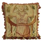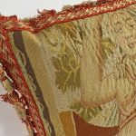 A beautiful Antique Aubusson cushion which has been handmade with a silk backing and silk fringe details.  This cushion is feather filled and very soft to handle.  The Aubusson face of this cushion is from an original French tapestry from the late 19th century which has been conserved where necessary and then made into this elegant decorative cushions.
