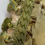 Aubusson tapestries depended on engravings as a design source or the full-scale cartoons from which the low-warp tapestry-weavers worked. As with Flemish and Parisian tapestries of the same time, figures were set against a conventional background of verdure, stylised foliage and vignettes of plants on which birds perch and from which issue glimpses of towers and towns.