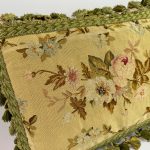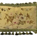 A beautiful early Antique Aubusson cushion which has been handmade with a silk backing.  This cushion is feather filled and very soft to touch and handle.  The Aubusson face of this cushion is from an original French tapestry from the mid to late 19th century, which has been conserved where necessary and then made into this elegant decorative cushion.