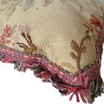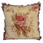 A beautiful early Antique Aubusson cushion which has been handmade with a silk backing.  This cushion is feather filled and very soft to touch and handle.  The Aubusson face of this cushion is from an original French tapestry from the late 19th century, which has been conserved where necessary and then made into this elegant decorative cushion.