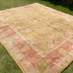 Often younger Ushak’s or Oushak’s will be rich red in colour and use bolder geometric designs. This Anatolian carpet has an almost contemporary feel to it and would work in a modern space as well as traditional. We clean every carpet before offering it for sale and make sure the ends and fringes are secured. A decorative subtle piece ideal for a soft scheme.