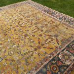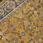 An extraordinary golden yellow antique Ziegler carpet from the late 19th century. It is incredibly rare to come across this background colour due to the expensive yellow dyes. More often using saffron or turmeric to dye the wool to get this remarkable colour, in the late 19th century it would have been a costly exercise and usually these grand carpets from the Sultanabad workshop in Persia were commissioned for stately homes across Europe and the US.