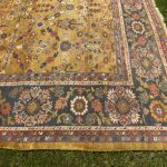 Measuring 520 x 425 cm / 17′ x 13’11” the condition is wonderful, with some corrosion to the ancient brown dyes, this wool had a lot of iron properties, which is why it has corroded over the last 130 plus years. This has to be one of our favourite antique Ziegler carpets we have ever had in our collection, and it has also recently been used in an upcoming Hollywood movie. Even more exciting that a few very famous and amazing actors have walked over it. We cannot wait to see the film!