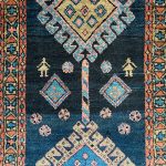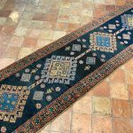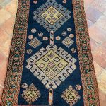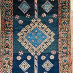 Heriz and Karaja are not far from the Azerbaijan Border so they draw influences from many Caucasian rugs and runners. They are easily recognisable with repeating medallions similar to those in caucasian rugs. The central motif is often the latch-hooked design motif or an eight-pointed star. The village weavings of Karaja such as this runner often use a simpler repeating medallion design with a great array of colour.
