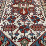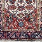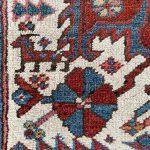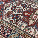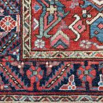 Antique Heriz rugs and carpets are know as the ‘Iron rugs of Persia’ as they are extremely tough being made using good quality wool in the north-west of Persia. Madder red and indigo blue dyes are the most common colours you associate with Heriz weavings.
