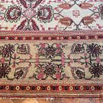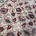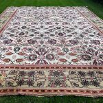 The Indian city of Agra in the late 19th century was an area where carpet weaving began to excel, as carpets and rugs were commissioned for the western market. Persian designs were used, but like famous Ziegler carpets the designs were generally enlarged to show beautiful floral palmettes, leaves and vines with mainly deep reds, purples, greens and ivory/grey tones as the predominant colours.