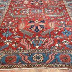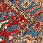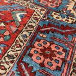 The weavers in Bakshaish, north Persia used the influences of tribal weavers from the Caucasian villages in their designs. These rustic carpets are often a very similar in colour to that of neighbouring Heriz and Serapi carpets and rugs. The early pieces such as this will always have more muted dyes purely down to their age, the natural yellows and variety of rust reds are only seen in carpets of this vintage.