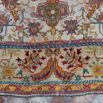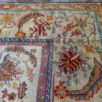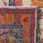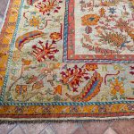 Ushak’s were woven in Western Anatolia which was one of the largest rug production areas since the Ottoman Empire. Their designs tend to be more open than Persian rugs and soft dyes are not uncommon. Often younger Ushaks or Oushaks will be rich red in colour and use bolder geometric designs. This Anatolian carpet has an almost contemporary feel to it and would work in a modern space as well as traditional. We clean every carpet before offering it for sale and make sure the ends and fringes are secured.