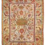 Ushak carpets and rugs were woven in the Anatolian highlands south of Istanbul where they used extremely soft wool and using the larger Turkish knot made them weave more open designs than Persian carpets. They are increasingly desirable today due to their sometimes softer palette such as this stunning piece, than Persian carpets, thus making them easy to place in a drawing room, bedroom or under a dining table for example.
