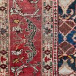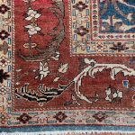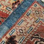 With the age of this carpet we can see wear in many areas, old restoration is visible in the border and in the main background in places. In some ways the wear and repairs do not effect the look at all, and in fact add to its ancient allure.