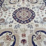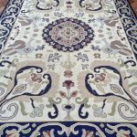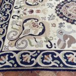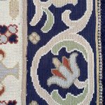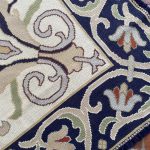 Portuguese Needlepoint carpets differ from traditional Persian carpet weaving in that they produced using a tapestry needle and are created using diagonal stitches on the carpet’s jute or wool canvas. They have a larger wool knot because of this technique. The elegant floral patterns are actually created by changing the colours of the wool. Where as traditional Persian carpets are woven on a vertical loom, where the warp is strung vertically and the weft and knots go across the warp.