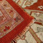 Often younger Ushaks or Oushaks will be rich red in colour and use bolder geometric designs. This Anatolian carpet has an almost contemporary feel to it and would work in a modern space as well as traditional. We clean every carpet before offering it for sale and make sure the ends and fringes are secured. A decorative subtle piece ideal for a soft scheme.