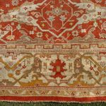 Ushak rugs and carpets were woven in the Anatolian highlands south of Istanbul where they used extremely soft wool and using the larger turkish knot made them weave more open designs than Persian carpets. They are increasingly desirable today due to their sometimes softer palette than persian carpets, thus making them easy to place in a drawing room or under a dining table.