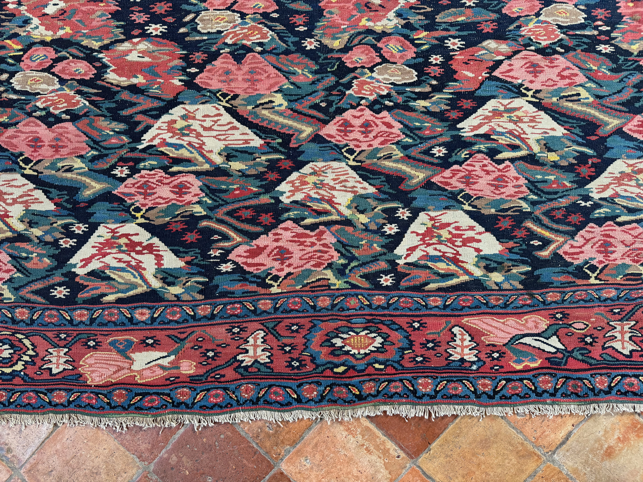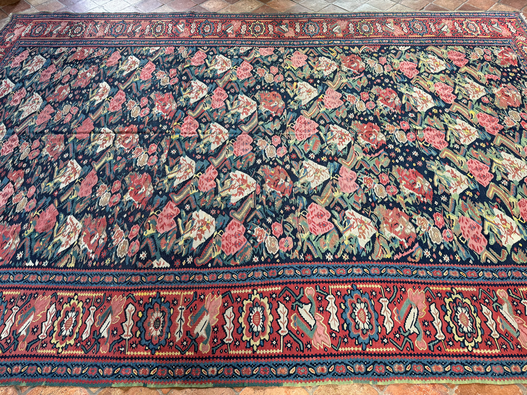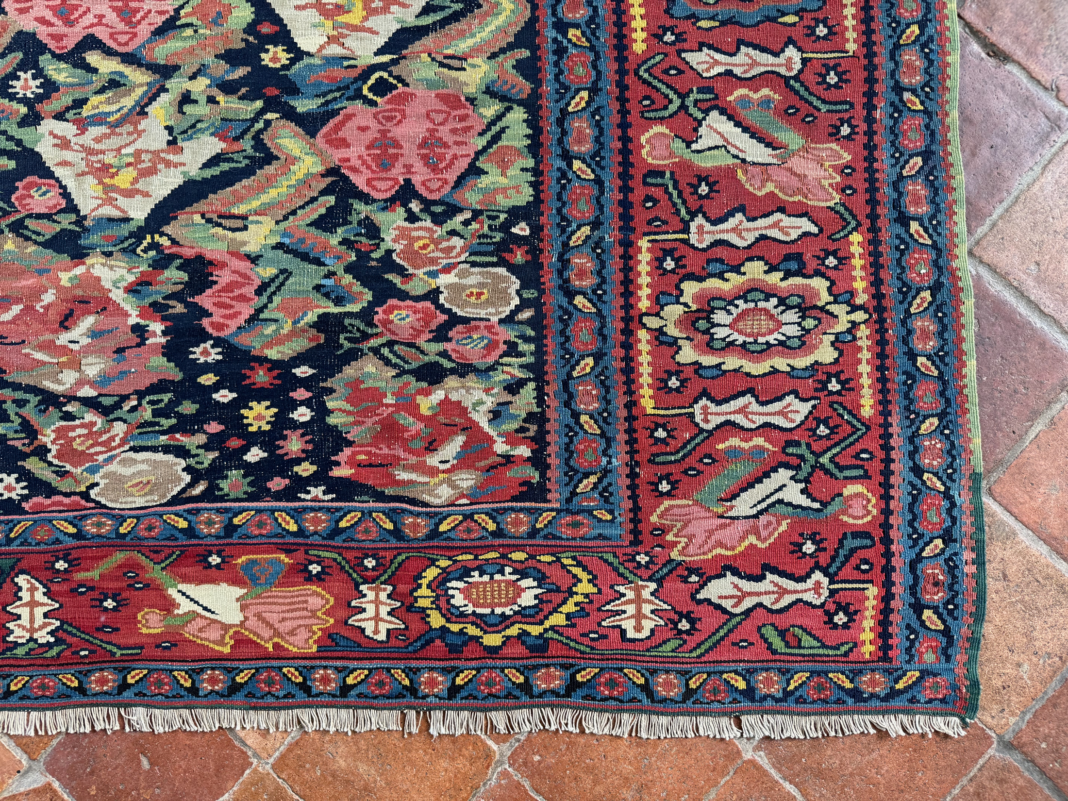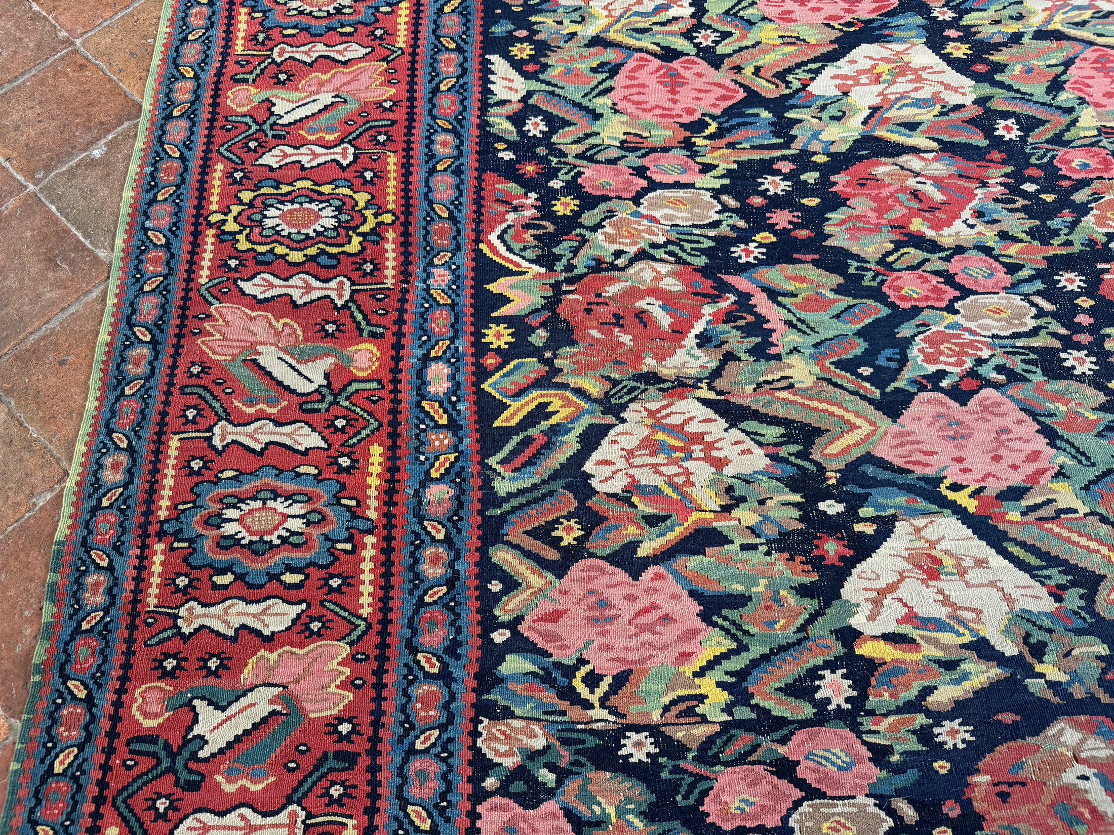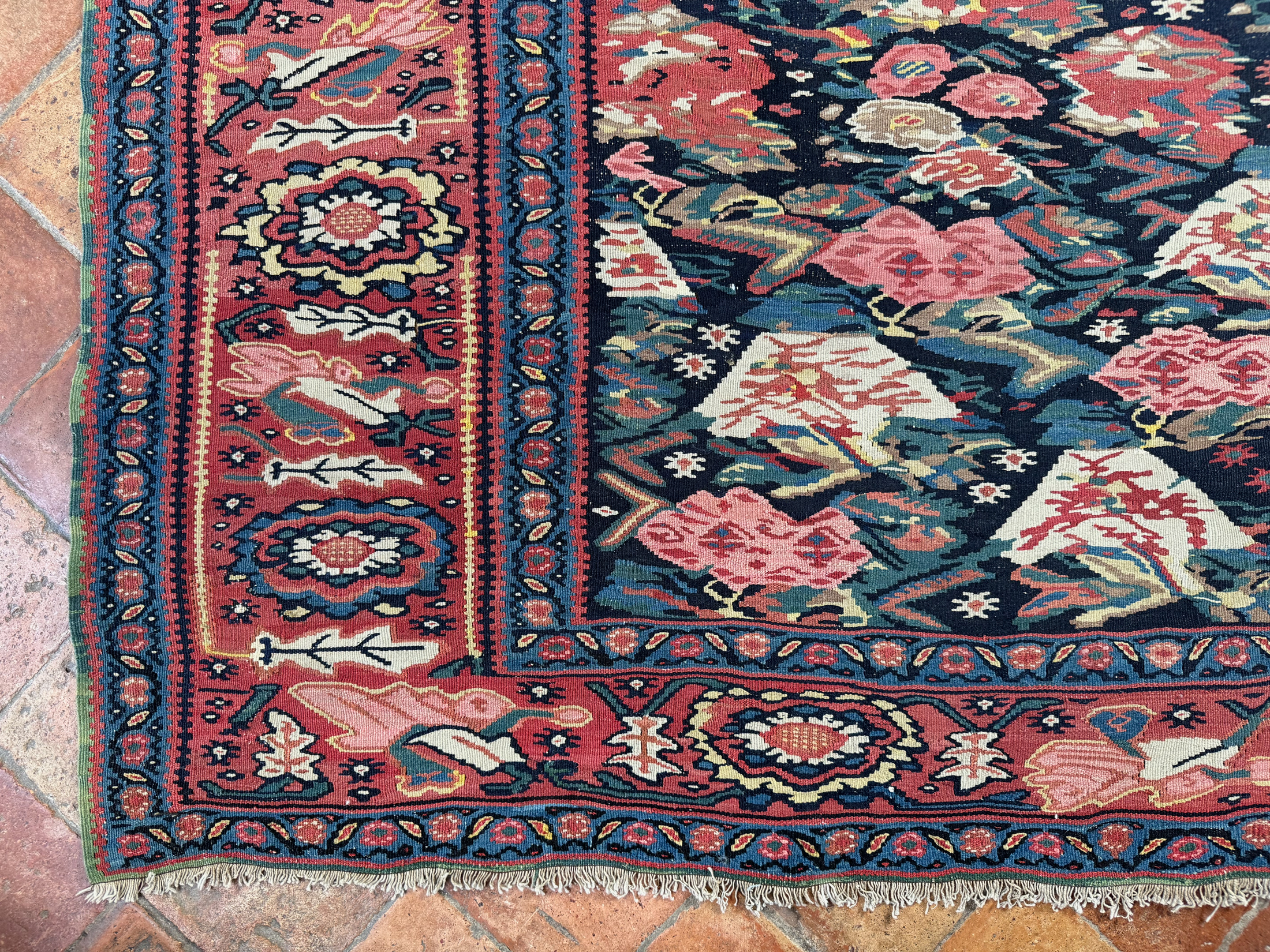 Exceptional condition it has been used on the floor and well looked after. We supply excellent anti-slip underlay to aid kilims, helping them stay flat on the floor. As unlike a wool piled carpet, these flatweaves are very thin and often move around. A beautiful rare kilim, as you never see kilims of this type and age in such amazing order.