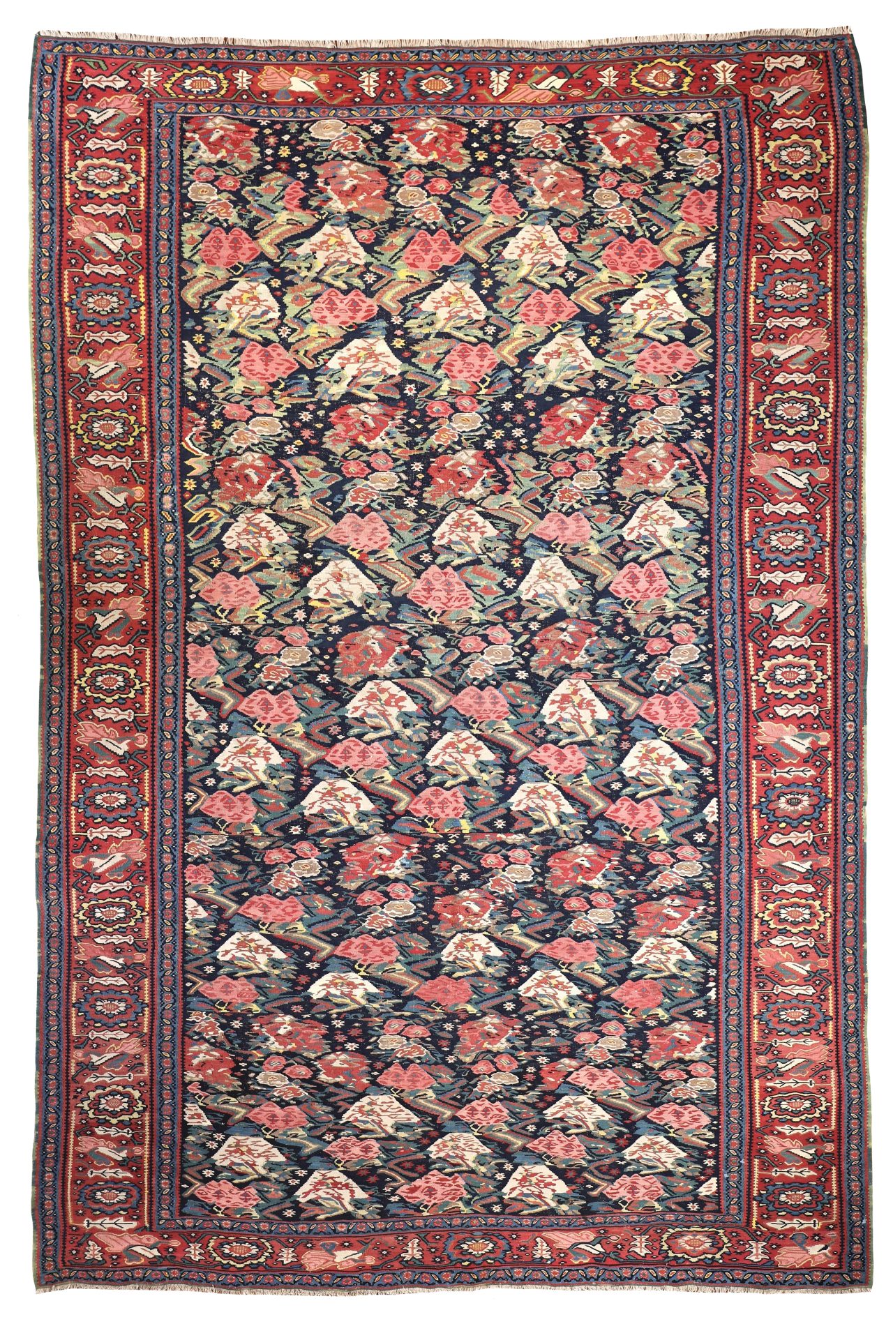 Senneh or Senna, now called Sanandaj which is the capital of the Kurdistan province in Persia produced a variety of exceptional and decorative pieces by Kurd weavers in the late 19th century. Fine Senneh carpets, rugs and runners are often delicate in their design and their distinctive, weaving technique. Varying in design from all over floral shrub designs, Gol Farang designs, earlier carpets and runners have amazing Poppies all over as well as medallion patterns, their colours are often blue, red and using natural ivory wool.