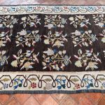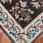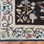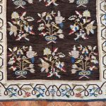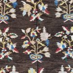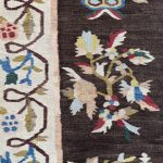 Carpets and kilims were woven with sheep’s wool on the vertical or horizontal looms; sometimes hemp or flax was used for the base. Woollen yarn was dyed with natural dyes from local plants and insects. A group of kilims with floral patterns were produced from central regions of Ukraine (Poltava, Kyiv, Chernihiv) Ornament consists of images of flowers, more or less stylised or branches with flowers arranged rhythmically or related to the overall pattern.