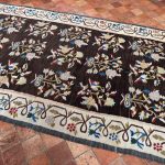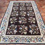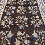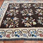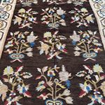 Woven in the late 19th century, this is a truly wonderful Bessarabian kilim with a rare brown/aubergine toned background, the dye changes are subtle and work so well with the design to resemble flowing water. The muted border with subtle pinks, powder blues and sage greens for the floral patterns create a lovely palette. A very rare larger size too for a Bessarabian kilim of this age, as usually they smaller and not as long. Condition is perfect and professionally backed too, this is one an early and exceptional piece.