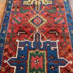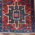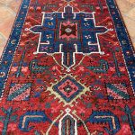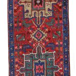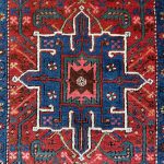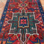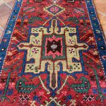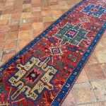 Heriz and Karaja are not far from the Azerbaijan Border so they draw influences from many Caucasian rugs and runners. They are easily recognisable with repeating medallions similar to those in caucasian rugs. The central motif is often the latch-hooked design motif or an eight-pointed star. The village weavings of Karaja such as this runner often use a simpler repeating medallion design with a great array of colour.