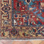 Karaja rugs were woven in the North-West of Persia, not far from the weavers of the Caucasus, which is why we see animal motifs and geometric designs from antique Caucasian rugs. Look for the lovely small Reindeer motifs shown four times around the central medallion.