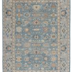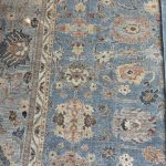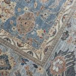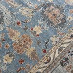 A wonderful large contemporary carpet to work in a drawing room, bedroom, entrance hall, study or anywhere in the home. These are woven the same way as antique carpets which have last over 150 years, made to be beautiful and durable for a busy and family life. These Sultanabad carpets are hand-woven using the best hand-spun wool and natural dyes, this carpet is full of delightful soft tones, using a light blue/grey border and a wonderful sea blue main background. With warmer shades of red, brown hues and hints of green too for the pattern, a very handsome carpet.
