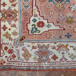 Ushak’s were woven in Western Anatolia which was one of the largest rug production areas since the Ottoman Empire. Their designs tend to be more open than Persian rugs and soft dyes are not uncommon. Often younger Ushaks or Oushaks will be rich red in colour and use bolder geometric designs. This Anatolian carpet has an almost contemporary feel to it and would work in a modern space as well as traditional. We clean every carpet before offering it for sale and make sure the ends and fringes are secured.