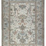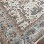 A lovely light off-white ground contemporary Sultanabad carpet, with a wonderful open design and a gorgeous pale blue border. Beautifully drawn, the major border is so detailed with exquisite little flowers and leaves, the large palmette design in the centre is really well spaced out too. Using the best natural dyes, these are hand-woven using the very best wool and soft colours. The natural dyes are faded and gentle, with sage green tones, dusky pinks, light blues, and hints of warmer reds in the small flowers in the border. This carpet could be mistaken for being an antique Ziegler over 100 years old, it has been beautifully hand-crafted by the best weavers.