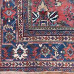 This antique Mahal carpet is such an attractive and decorative carpet, with all natural dyes dating from 1910-1920. We have always loved the pale blue the weavers used over 120 years ago and this lovely piece is full of this wonderful dye in the border. With a warm red to pinkish toned main background, the soft greens used for the large floral design are a particular highlight.