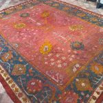 Ushaks were woven in Western Anatolia which was one of the largest rug production areas since the Ottoman Empire. Their designs tend to be more open than Persian rugs and soft dyes are not uncommon. Often younger Ushaks or Oushaks will be rich red in colour and use bolder geometric designs. This Anatolian carpet has an almost contemporary feel to it and would work in a modern space as well as traditional. We clean every carpet before offering it for sale and make sure the ends and fringes are secured.