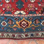 Saturated dyes, and in brilliant condition, as Bidjar’s are notably tough and strong weaves this ancient rare rug is quite a stunning piece of history. The blue border designs also shows the so-called ‘turtle’ motif, see the pink and golden yellow designs resembling the animal.