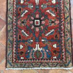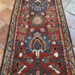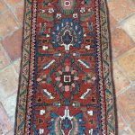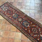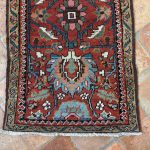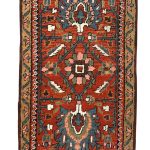 Heriz and Karaja are not far from the Azerbaijan Border so they draw influences from many Caucasian rugs and runners. They are easily recognisable with repeating medallions similar to those in caucasian rugs. The central motif is often the latch-hooked design motif or an eight-pointed star.  The village weavings of Karaja such as this runner often use a simpler repeating medallion design with a great array of colour.