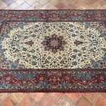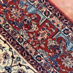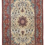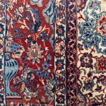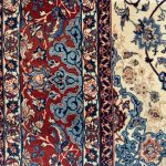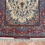Isfahan is situated virtually in the centre of Iran, and was once the capital city. The rugs are woven in the city itself and the surrounding villages. Starting in the early 17th century, their name was renowned throughout Europe – this has continued to the present day. Although rug making was interrupted by the Afghan invasion, it quickly re-established itself as a major centre for the finest handmade carpets. This example show cases why Isfahan are famous for weaving the most detailed, beautiful fine rugs.