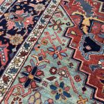 The reason Heriz rugs are so tough is that Mount Sabalan is located close to Heriz and sits on a major deposit of copper. Traces of copper in the drinking water for the sheep produces high quality wool that is far more resilient than wool from other areas.