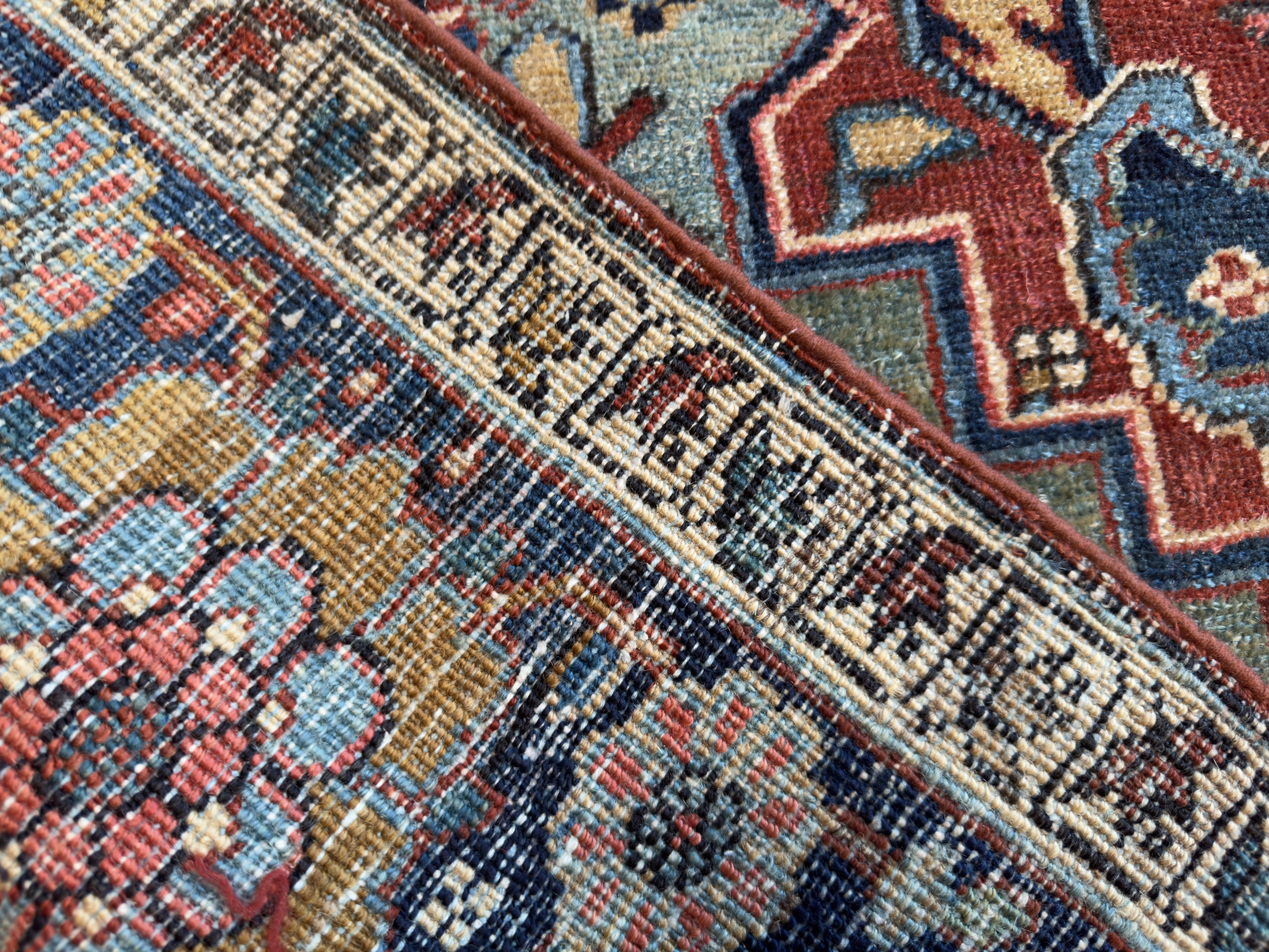 The reason Heriz rugs are so tough is that Mount Sabalan is located close to Heriz and sits on a major deposit of copper. Traces of copper in the drinking water for the sheep produces high quality wool that is far more resilient than wool from other areas.