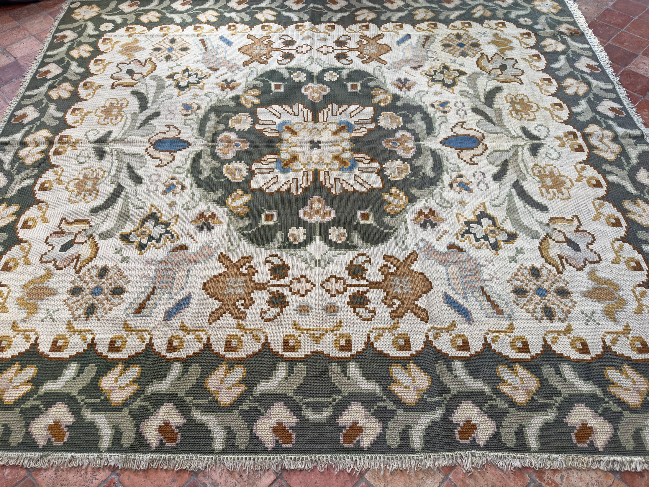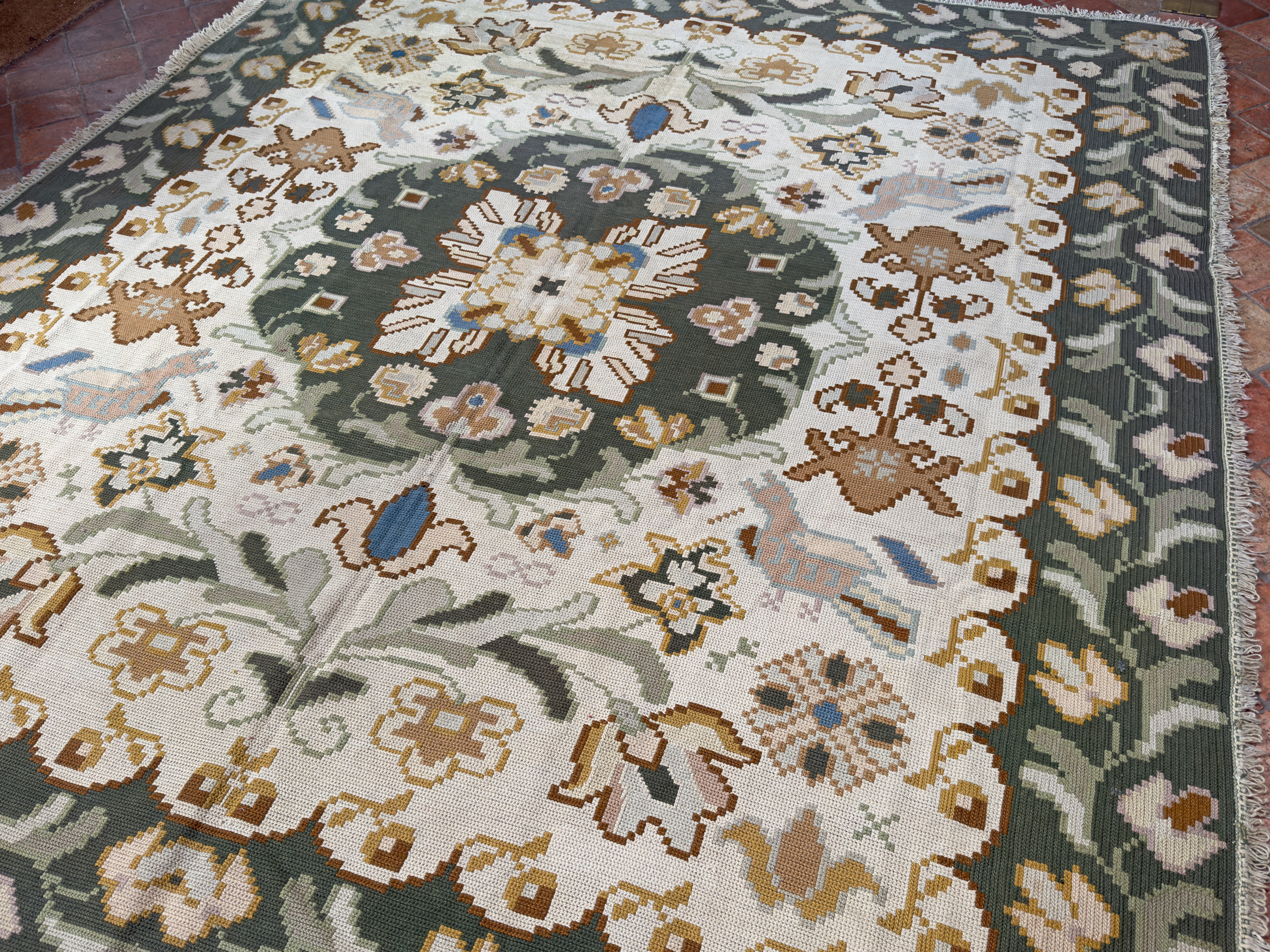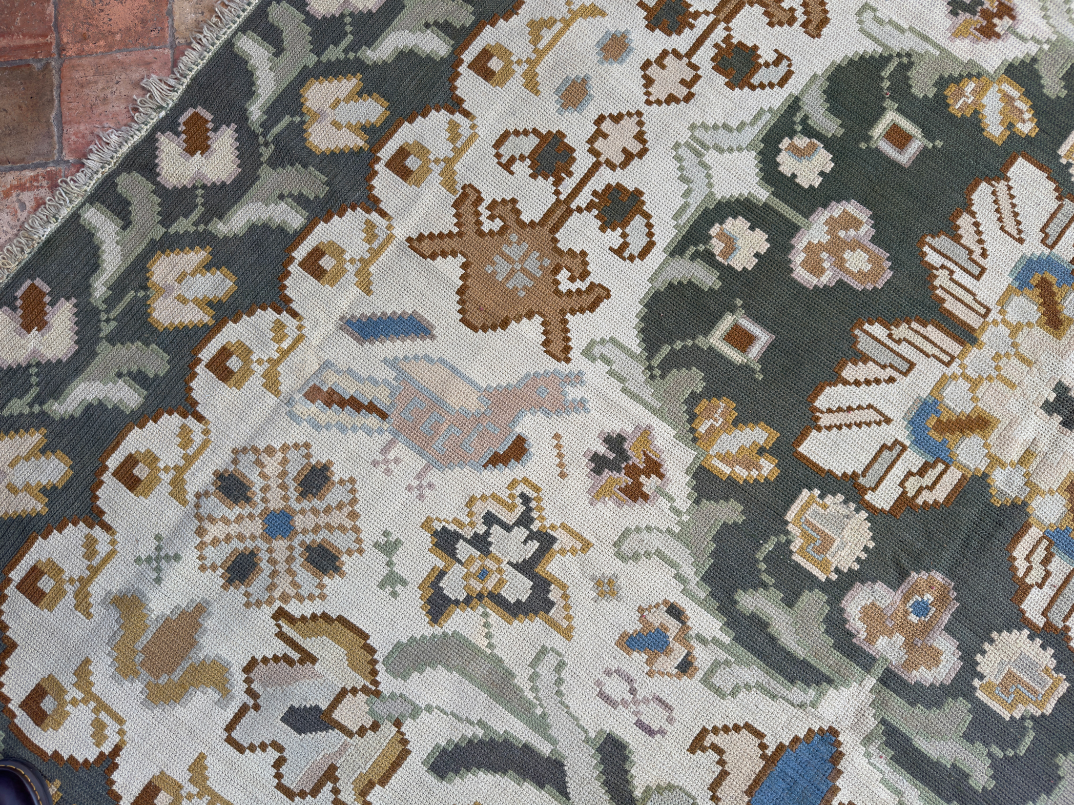 We offer the service of viewing any of our carpets & rugs in-situ in London, Surrey, Hampshire & the UK by appointment. Please request a home visit to see this lovely antique Portuguese needlepoint in-situ at a convenient time.