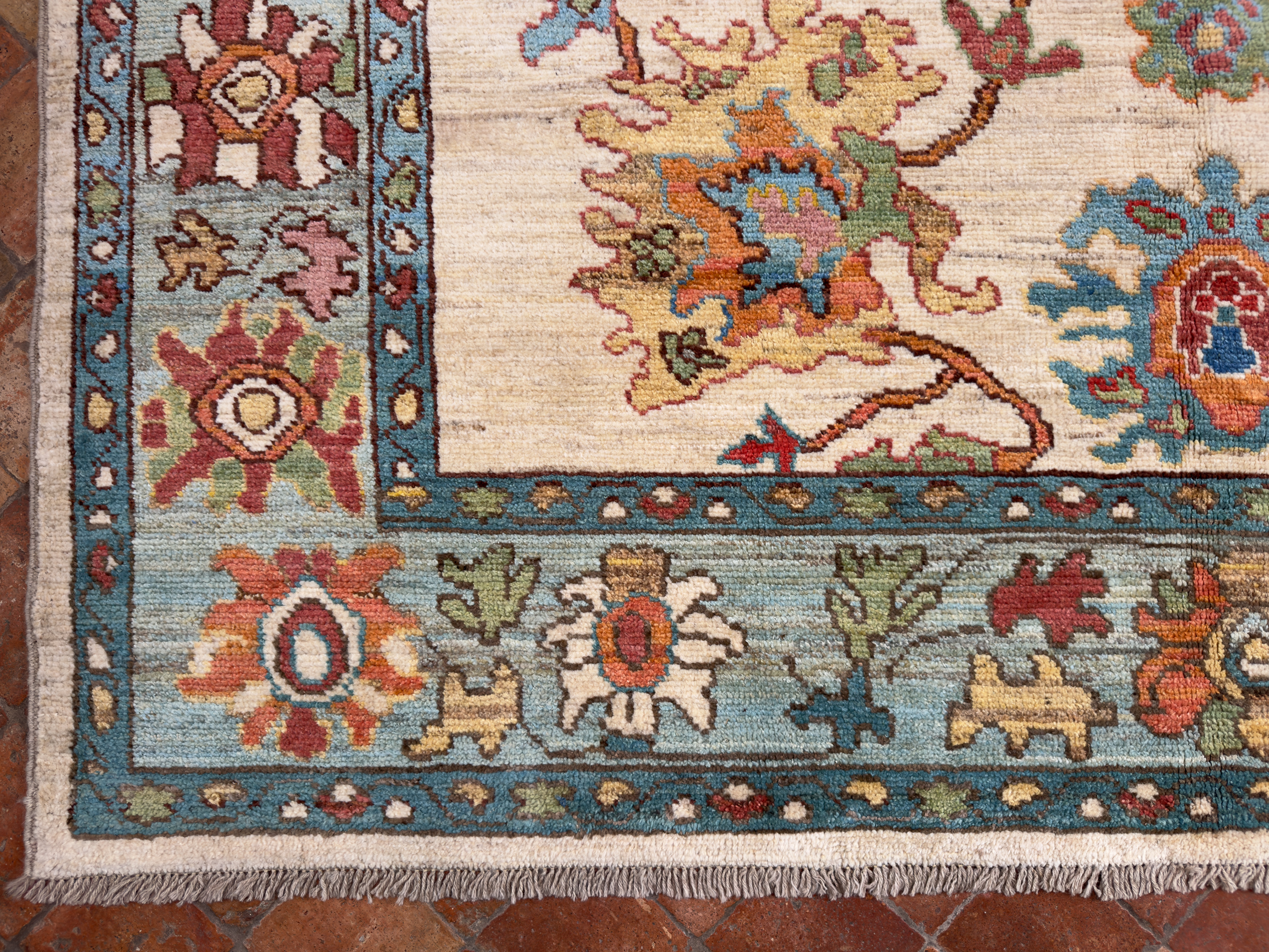 These are one of the best productions of contemporary carpets on the market currently, using traditional designs with an open feel, they are even better to view up close and in your home. The pile height is not too high on these Sultanabad carpets, it has been cut medium high, which helps make them look more like a faded antique carpet. Please view all the additional images to see the colours up close.