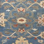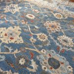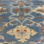A stunning large scale contemporary Sultanabad carpet, with amazing colours, hand-woven all with natural wool and dyes. A lovely variety of indigo blues, soft gold tones, grey tones, and orange and red dyes. Soft pinks too, along with sage greens, a great palette of natural dyes, all hand-woven with excellent soft wool.