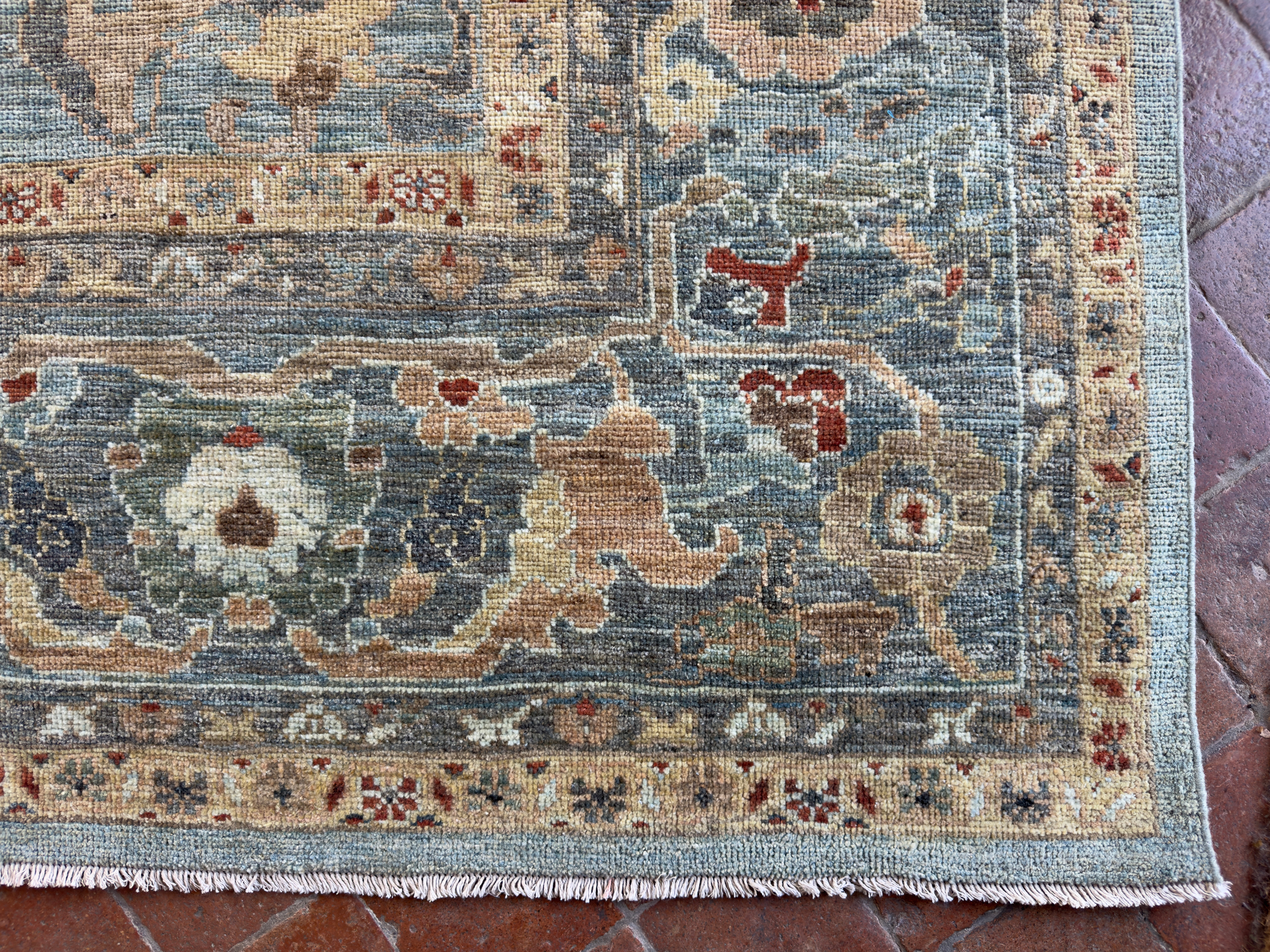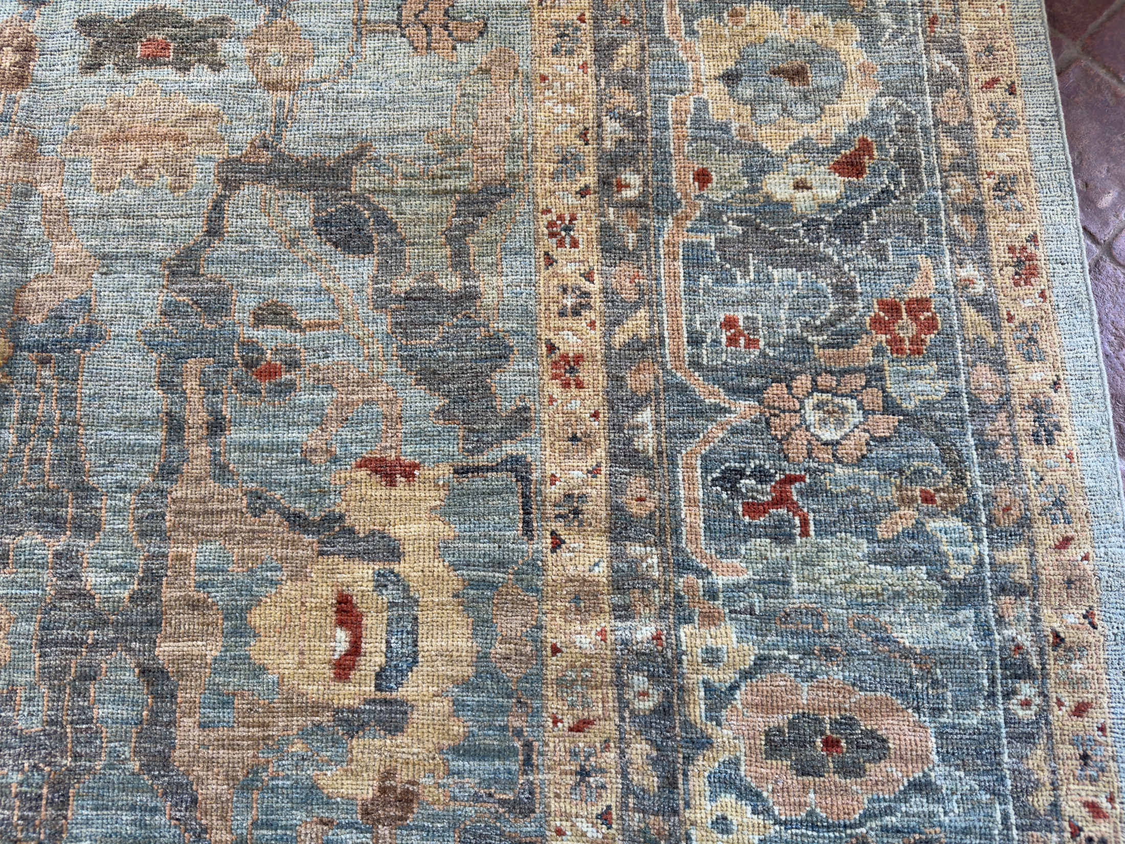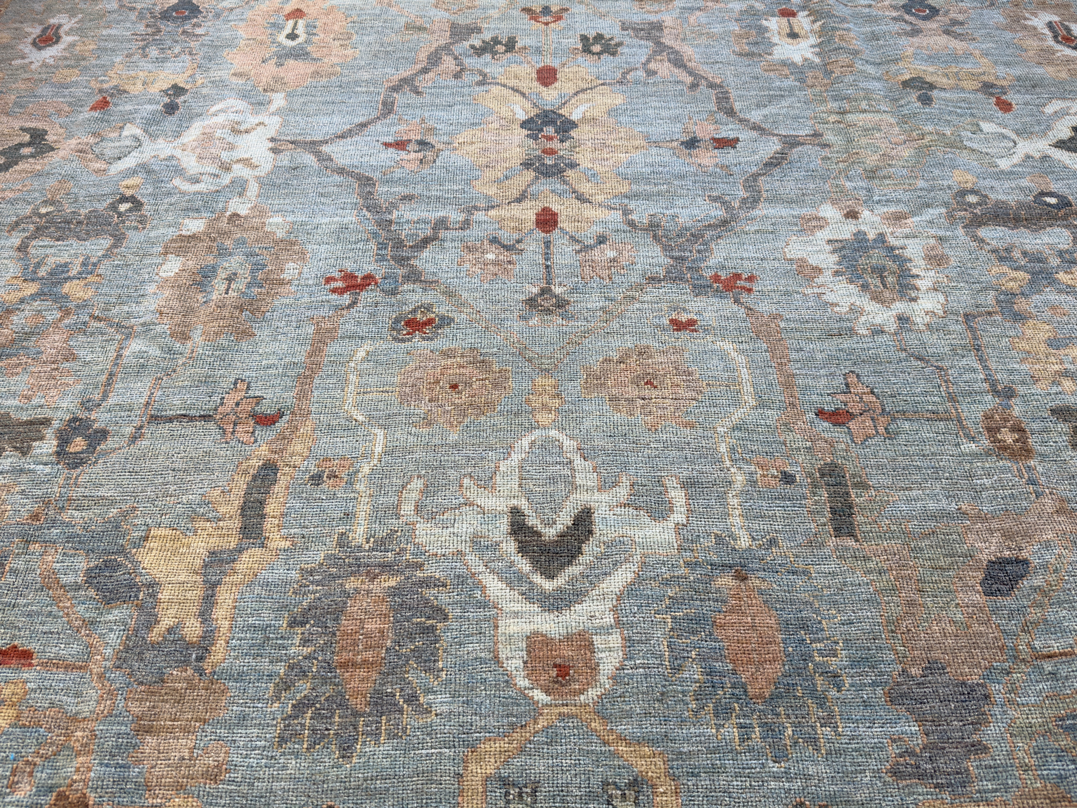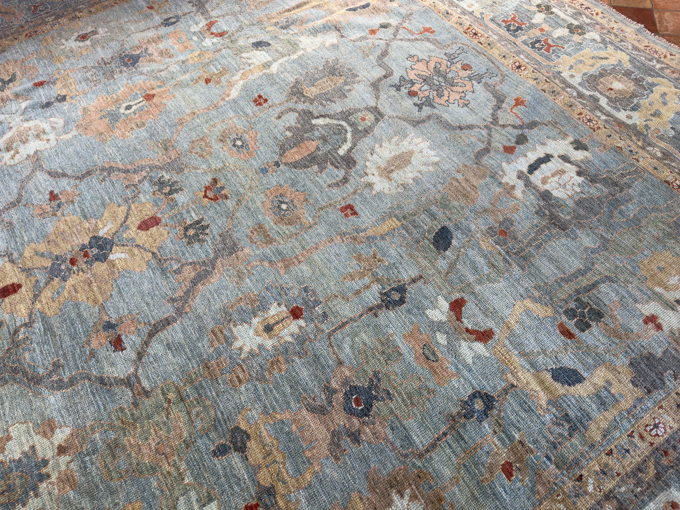 A majestic contemporary carpet using an antique Sultanabad design. These Sultanabad carpets are all hand-woven with the best hand-spun wool and natural dyes. The pile height is cut low to medium high, making them look more like an antique carpet and not brand new. This means placing them in any room, they look like they have always lived there and timeless in their look.