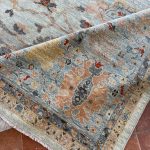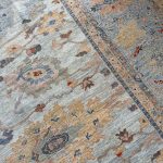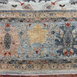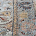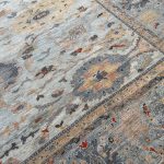 Woven with exquisite colours of indigo blues, soft gold tones, grey tones, and faded pinks and hints of warmer red dyes. The background is a mixture of pale blues and greys, giving it great depth, the border is a delightful pale blue. We have a large collection of beautiful contemporary carpets and rugs alongside our antique carpets and rugs.