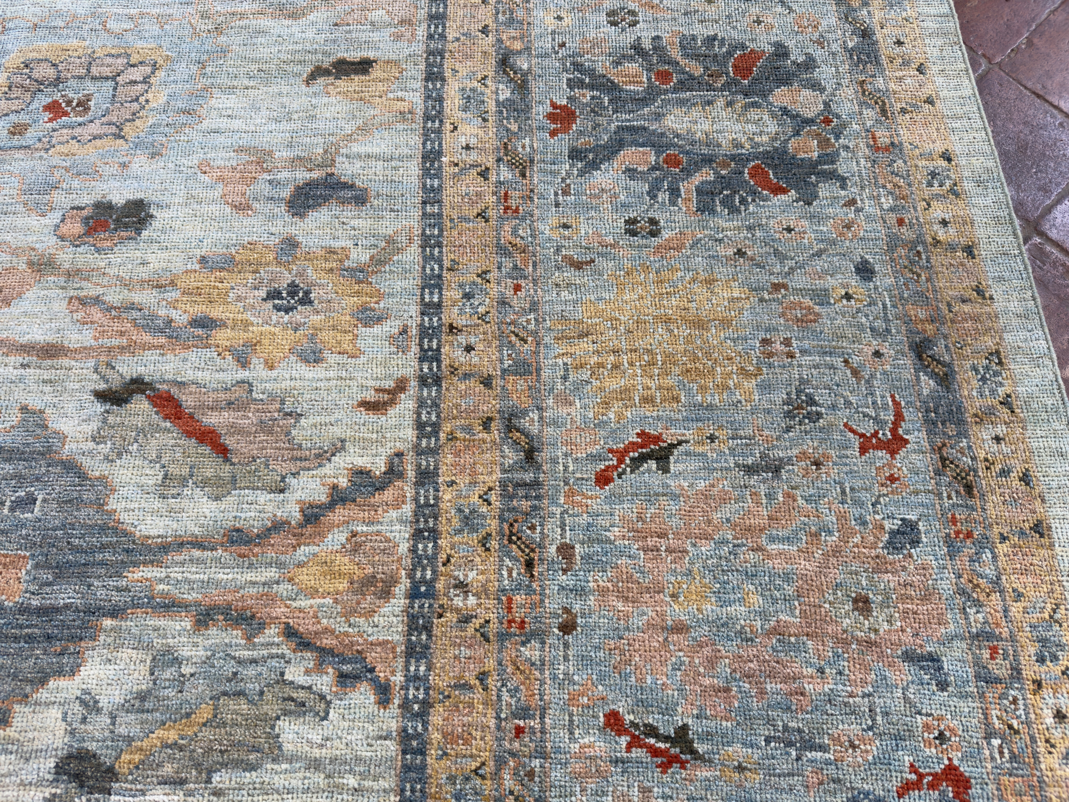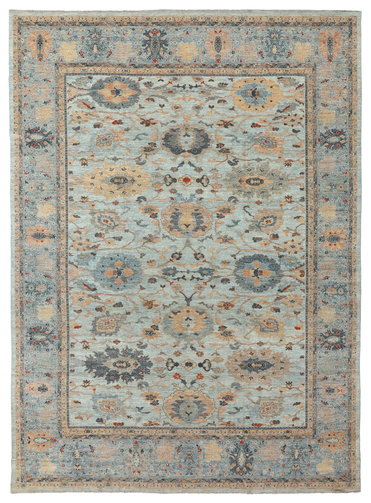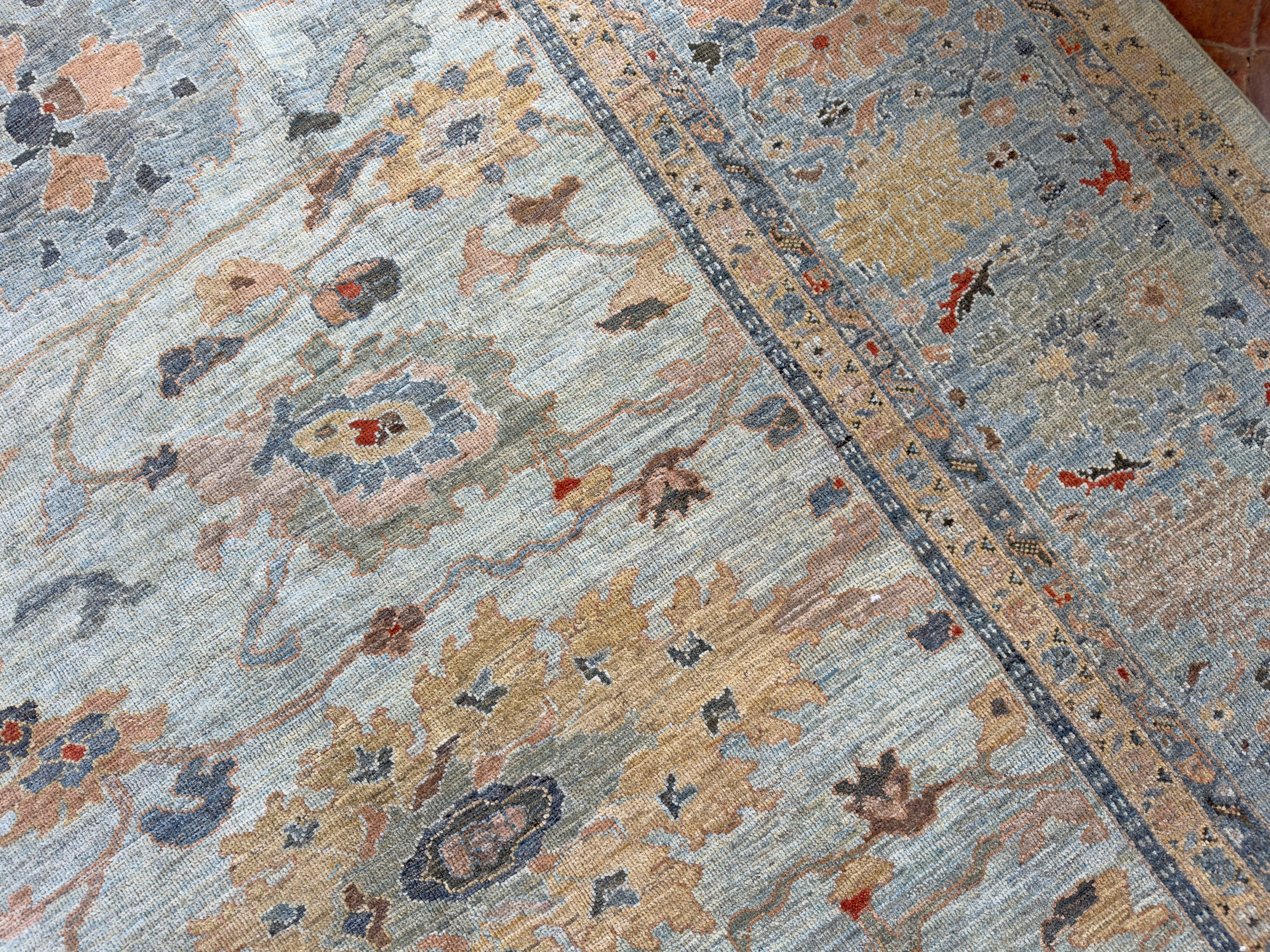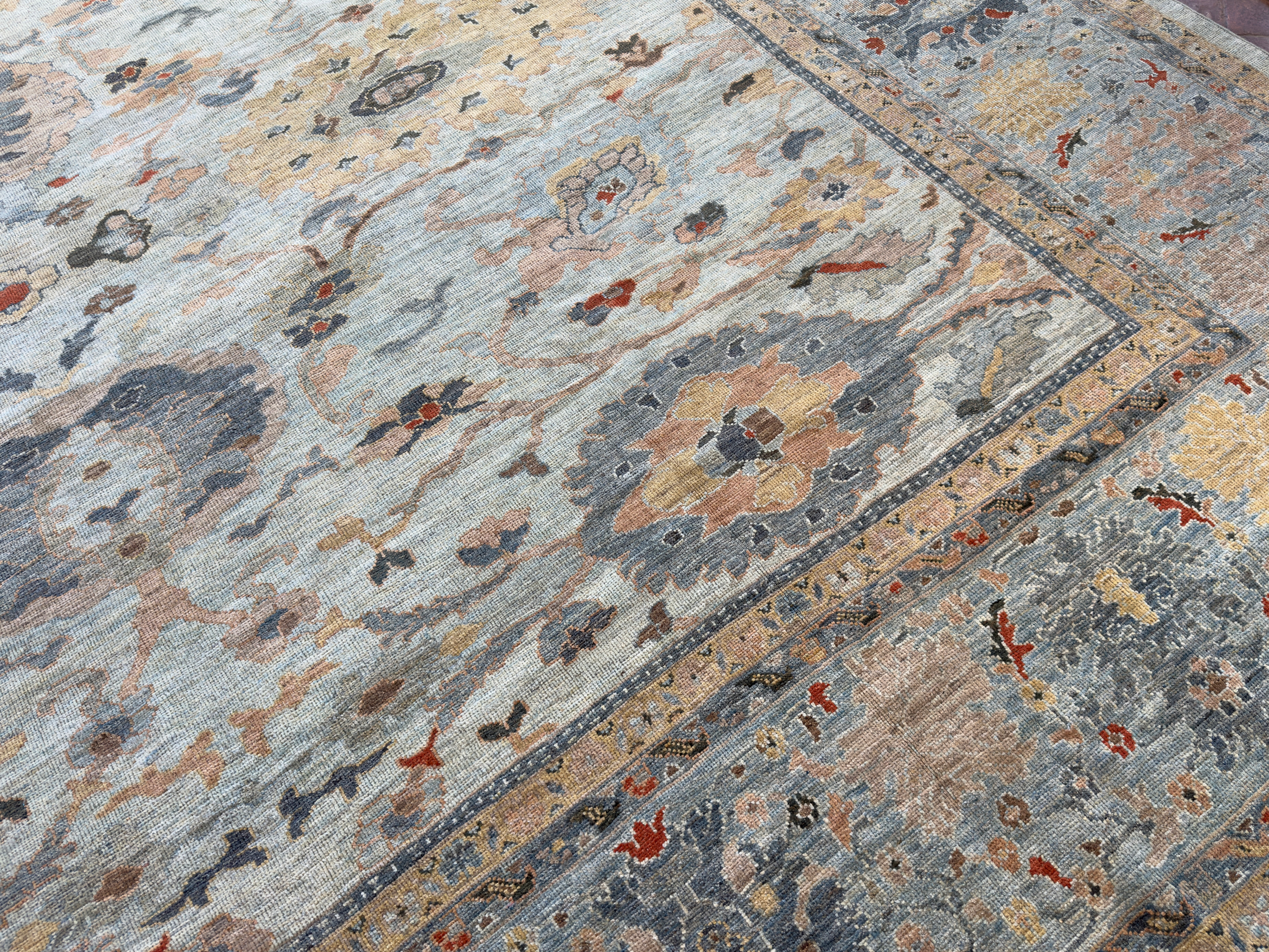 An oversize contemporary carpet using a wonderful large scale palmette floral pattern, this amazing design is taken from an antique Ziegler carpet. These Sultanabad carpets are all hand-woven with the best hand-spun wool and natural dyes. The pile height is cut low to medium high, making them look more like an antique carpet and not brand new. This means placing them in any room, they look like they have always lived there and timeless in their look.