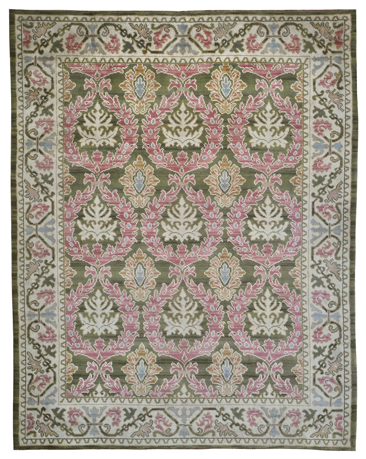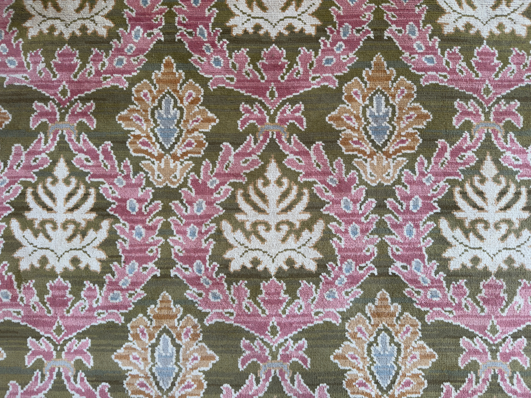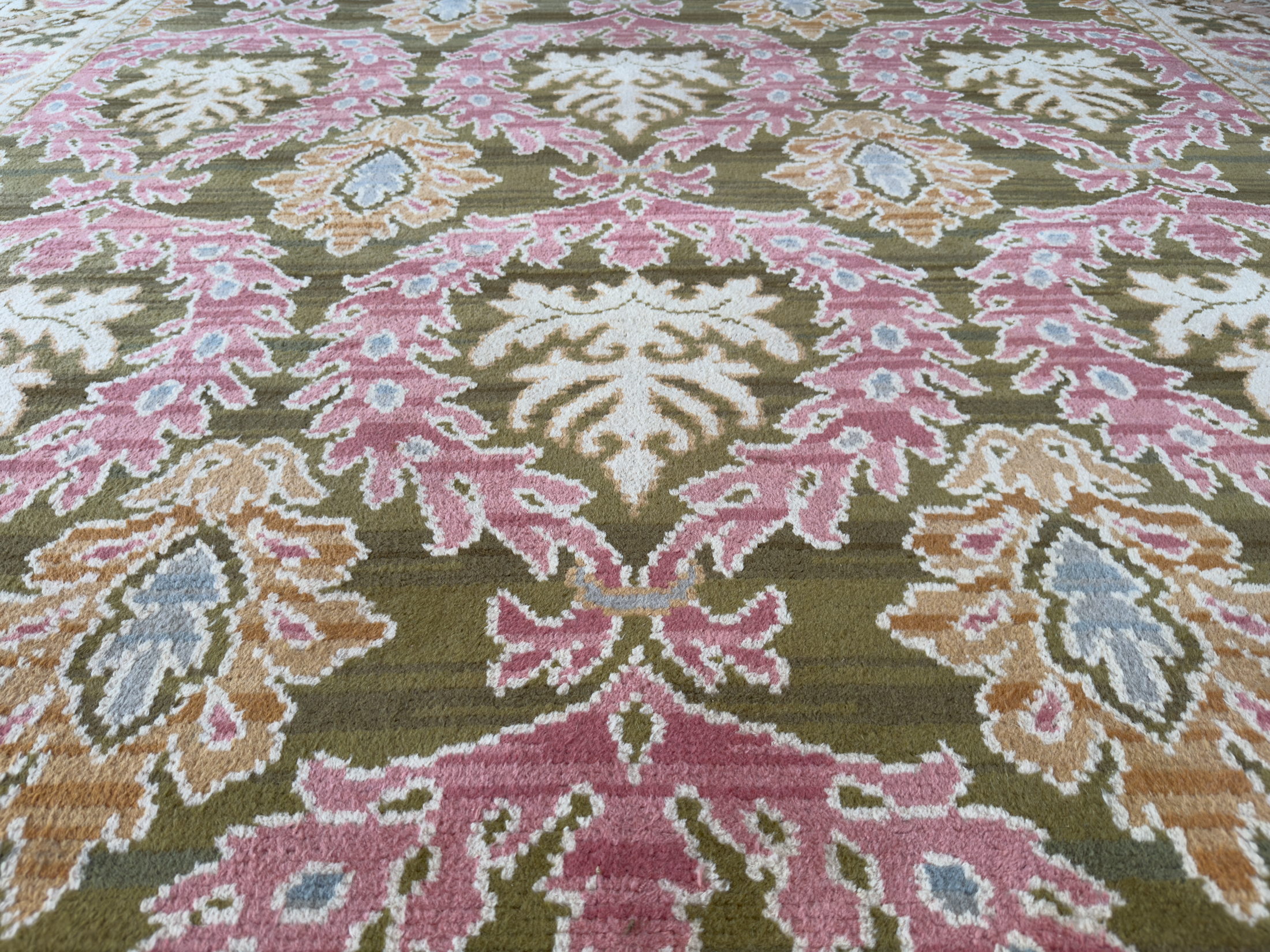 We offer the service of viewing our carpets & rugs in-situ in London, Surrey, Hampshire and all over the UK & Europe by appointment.  Request a home visit to choose a convenient day and time to view this beautiful pale antique Spanish carpet in situ to see if it works with your interior.